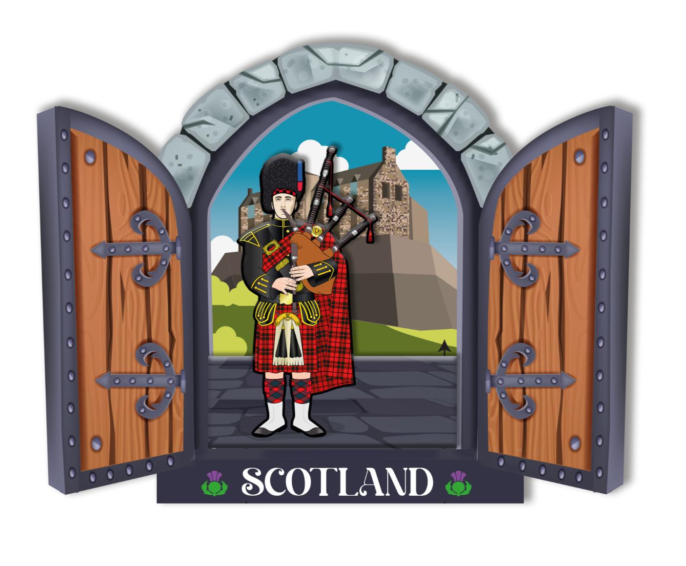 1572 Highland Cow & Castle 3D MDF Fridge Magnet